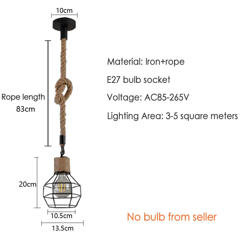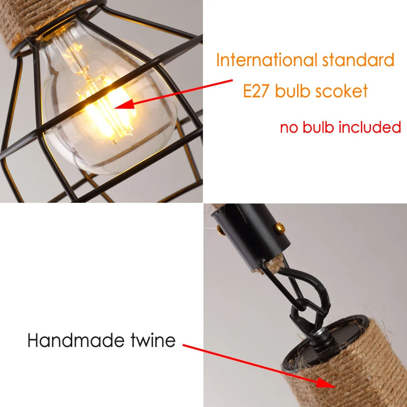 Lámpara colgante de cuerdas de cáñamo Vintage para Loft industrial, lámpara colgante para pasillo, Bar, comedor, restaurante, cafetería, luz colgante