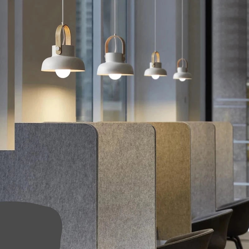 Nombre : Lámpara colgante pequeña con anillo de hierro de grano de madera.