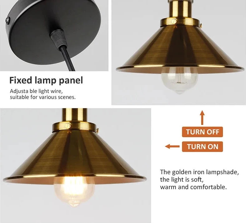 With its black and gold lampshade, this light adds a touch of elegance to any space. The iron finish gives it a rustic and industrial feel, making it a versatile piece that can fit into any decor style.