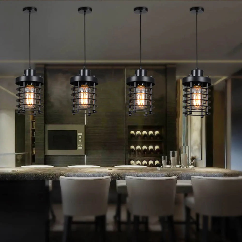 With its creative design and sturdy structure, this pendant light is perfect for use in aisles, porches, or as a statement piece in a bar. Its American-inspired style adds a touch of nostalgia and character to any space. Don't miss out on the opportunity to elevate your decor with this beautiful wrought iron cage bar pendant light.