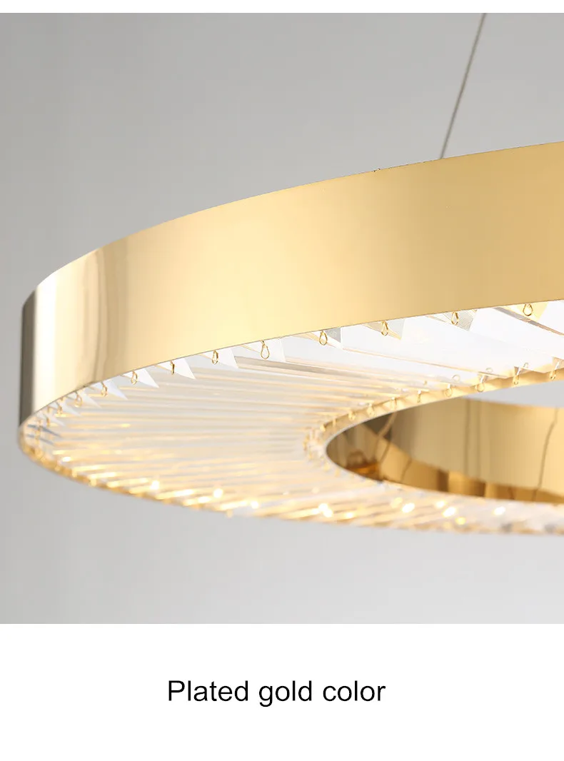 This pendant lighting is the perfect addition to any modern home. With its sleek ring design and crystal accents, it adds a touch of elegance and sophistication to any room. Made with high-quality stainless steel and crystal materials, this pendant light is not only durable but also adds a touch of luxury to your living space.