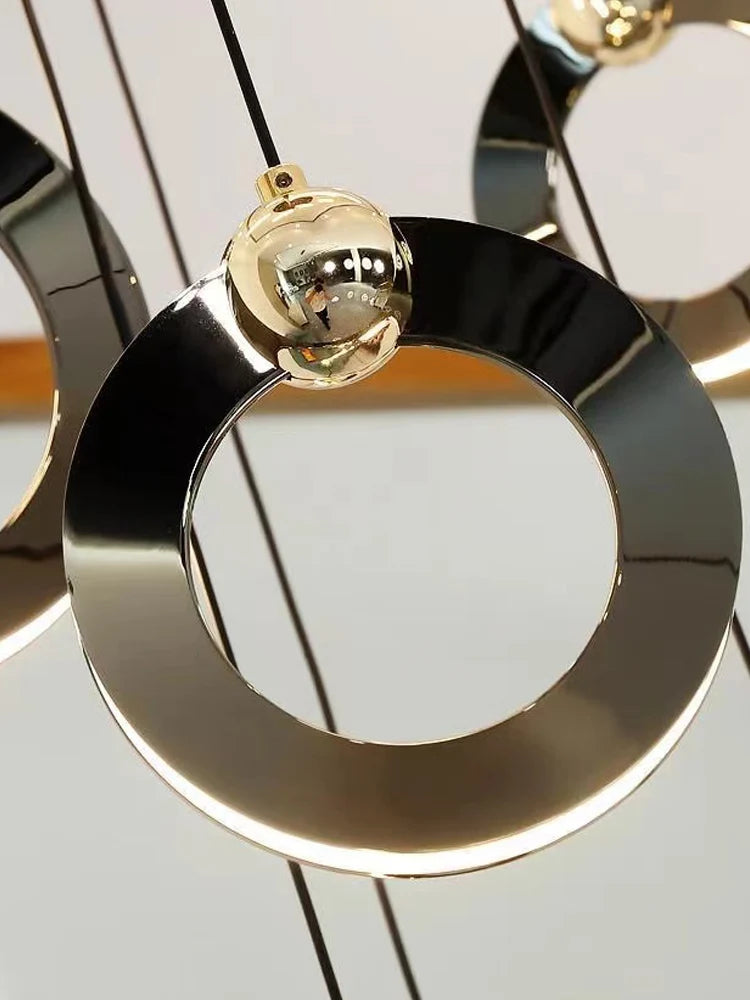 Introducing our LED stair case rings chandelier, the perfect addition to any modern living space. This stunning piece is designed to add a touch of elegance and sophistication to your home or business. With its sleek and modern design, it is sure to be a conversation starter.Crafted with high-quality materials, this chandelier is built to last. The aluminum structure is plated for a polished and durable finish. It is also available in a sleek black color, making it a versatile piece that can complement any interior design.This chandelier comes with 8 LED light sources, providing ample lighting for a 15-30 square meter area. The bulbs are included and are energy-efficient, making it an eco-friendly choice for your home or business. The touch on/off switch adds convenience and ease of use.Perfect for various rooms, this chandelier can be installed in the parlor, study, master bedroom, and other bedrooms. It is also suitable for hotel halls and rooms, adding a touch of luxury to any space.With certifications for CCC, CE, EMC, LVD, and ROHS, you can trust the quality and safety of this product. It is easy to install with a cord pendant installation type, making it a hassle-free addition to your space.Upgrade your lighting game with our LED stair case rings chandelier. Its modern style and high-quality construction make it a must-have for any contemporary space. Order yours today and elevate your home or business with this stunning piece.